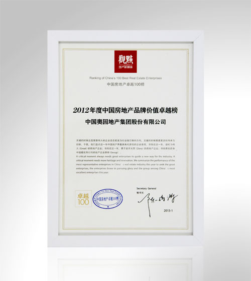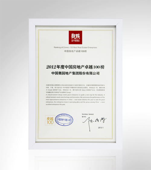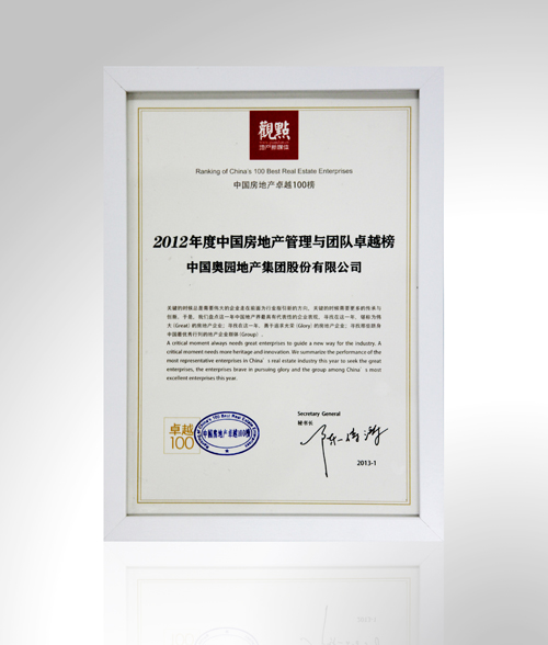 中國奧園地產(chǎn)集團(tuán)榮獲“2012年度中國房地產(chǎn)管理與團(tuán)隊卓越榜”等三項(xiàng)大獎