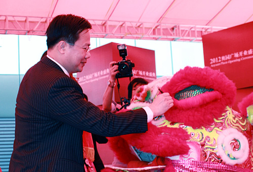 (2012年12月21日——廣州)12月21日,番禺商業(yè)發(fā)展歷史上第一家真正意義上的國際時尚購物中心——奧園廣場在萬眾期待中正式盛大開業(yè)。番禺區(qū)政協(xié)主席譚應華,區(qū)委常委、常務副區(qū)長陳德俊,及番禺區(qū)其他相關領導、橋南街黨工委、街道辦領導和區(qū)有關部門負責人,奧園集團董事局主席郭梓文,集團總裁郭梓寧等集團領導以及眾多商家代表、媒體機構及社會各界共同出席了開業(yè)慶典,見證了這個在番禺乃至廣州商業(yè)發(fā)展史上具有里程碑意義的時刻。