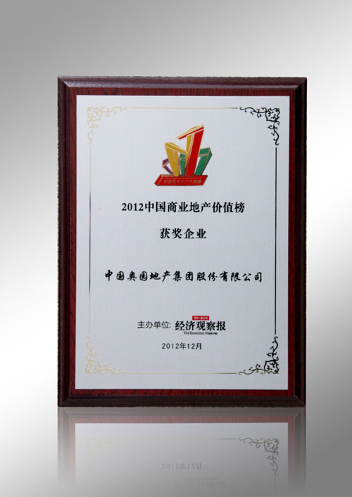 中國奧園地產集團榮登“2012年度商業(yè)地產價值榜”