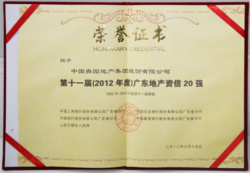 (2012年6月16日——廣州)憑借良好的企業(yè)信譽(yù)和穩(wěn)健的財(cái)務(wù)狀況,中國(guó)奧園地產(chǎn)集團(tuán)日前榮獲由工商銀行、農(nóng)業(yè)銀行、建設(shè)銀行、中國(guó)銀行四大行廣東省分行及人民日?qǐng)?bào)社人民網(wǎng)聯(lián)合舉辦評(píng)審的“第十一屆(2012年度)廣東地產(chǎn)資信20強(qiáng)”稱號(hào),成為連續(xù)十一年蟬聯(lián)該項(xiàng)榮譽(yù)的四家大型廣東省房地產(chǎn)企業(yè)之一。