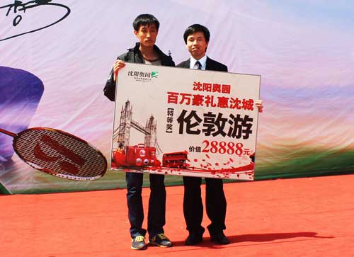 開球儀式前,沈陽(yáng)奧園總經(jīng)理助理黃繼宗先生致辭:2012年是奧運(yùn)年,中國(guó)奧園地產(chǎn)集團(tuán)重金力邀羽壇巨星謝杏芳作為活動(dòng)大使,共同宣揚(yáng)“奧運(yùn)年奧園情”精神。沈陽(yáng)奧園不僅以超性價(jià)比的親民體驗(yàn)來回饋客戶對(duì)奧園的厚愛,更有“倫敦奧運(yùn)游”大獎(jiǎng)、名牌家電等大禮饋贈(zèng)給幸運(yùn)客戶,沈陽(yáng)奧園將與大家共同踐行低碳、健康的生活理想。