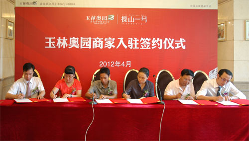 (2012年4月29日——玉林)玉林奧園商家入駐簽約儀式的玉林奧園營銷中心隆重舉行,2座首層風(fēng)情商鋪全城啟動預(yù)約,無限商機顯現(xiàn)眼前。