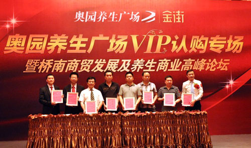 奧園養(yǎng)生廣場·金街是依托于大型城市養(yǎng)生綜合體的稀缺街鋪,統(tǒng)一規(guī)劃健康養(yǎng)生業(yè)態(tài),打造高端專業(yè)的國際健康養(yǎng)生步行街。目前,金街已吸引了中華城市養(yǎng)生中心、華潤萬家等眾多品牌商家,寶芝林、寶貝新村(母嬰連鎖百貨)、好參來、建設銀行、美國本草、韓國高麗參、北京同仁堂等知名企業(yè)正在積極洽談。本次論壇上,奧園養(yǎng)生廣場與中華城市養(yǎng)生中心、奧園健康管理中心、華潤萬家、瑞士瑪麗婭菲女子SPA機構、愛嬰寶貝城和南國水鄉(xiāng)生態(tài)美食城六大主力商家簽訂了意向進駐協(xié)議。