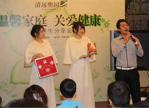 (2012年4月7日——清遠(yuǎn))春季為四時(shí)之首,是保健養(yǎng)生的重要時(shí)機(jī),養(yǎng)生計(jì)劃也需從春天開(kāi)始,一場(chǎng)以“溫馨家庭,關(guān)愛(ài)健康”為主題的春季養(yǎng)生分享會(huì)在清遠(yuǎn)奧園銷售中心溫情開(kāi)講。主辦方清遠(yuǎn)奧園特邀保健養(yǎng)生學(xué)資深講師與眾多來(lái)訪嘉賓探討?zhàn)B生之道,分享春季養(yǎng)生的知識(shí)和方法?;顒?dòng)吸引了來(lái)自清遠(yuǎn)以及周邊城市的近百名客戶熱情參與,受到廣大客戶的一致好評(píng)。