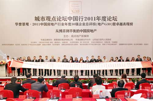由觀點地產(chǎn)新媒體主辦的中國房地產(chǎn)行業(yè)年度30強企業(yè)總評榜(G30)旨在表彰那些無論是處于什么經(jīng)濟形勢及政策調控下都持續(xù)發(fā)展的企業(yè),得獎名單倍受相關行業(yè)人士關注。榜單指標體系由運營、財務、品牌、管理四大指標體系構成。12月15日在廣州召開的“城市觀點論壇中國行2011年度論壇”觀點地產(chǎn)新媒體正式發(fā)布“2011中國房地產(chǎn)行業(yè)年度30強企業(yè)總評榜(地產(chǎn)G30)暨卓越表現(xiàn)榜”榜單,奧園憑借鮮明獨特的品牌特色榮獲“2011年度最佳品牌建設”,并且旗下的南沙奧園和奧園養(yǎng)生城二個項目作為典范項目安排為此次年會參會代表的參觀學習項目。翌日,有來自房地產(chǎn)、建筑、金融等相關行業(yè)的近100多位專業(yè)人士參觀了南沙奧園和奧園養(yǎng)生城,在以“低碳、生態(tài)、養(yǎng)生”為主題的山頂海景別墅示范區(qū),嘉賓們在羨慕奧園地產(chǎn)享受南沙發(fā)展大利好的同時,也對奧園地產(chǎn)獨具前瞻性的發(fā)展戰(zhàn)略表達了欽佩之意。