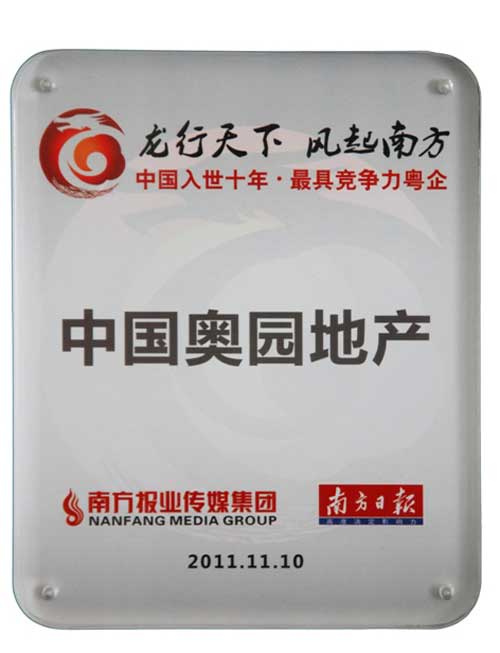 中國奧園地產(chǎn)集團又獲殊榮:榮膺“入世十年·最具競爭力粵企業(yè)”稱號和“2011年度最佳品牌建設”