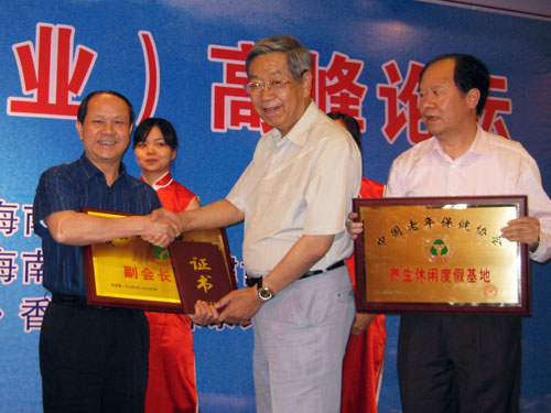 (2010年4月12日——廣州)2010年4月2日至4日,第二屆中國老年保健(產(chǎn)業(yè))高峰論壇在海南省??谑新≈嘏e行。在此次論壇上,中國老年保健協(xié)會任命奧園養(yǎng)生城為中國老年保健協(xié)會副會長單位,聘任梁國維總裁為中國老年保健協(xié)會副會長,并授予奧園養(yǎng)生城成為中國老年保健協(xié)會養(yǎng)生休閑度假基地,全國人大原副委員長許嘉璐副委員長親自向梁國維總裁授牌。