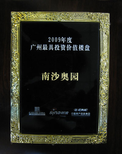 南沙奧園喜獲“2009年度最佳投資價值樓盤”殊榮